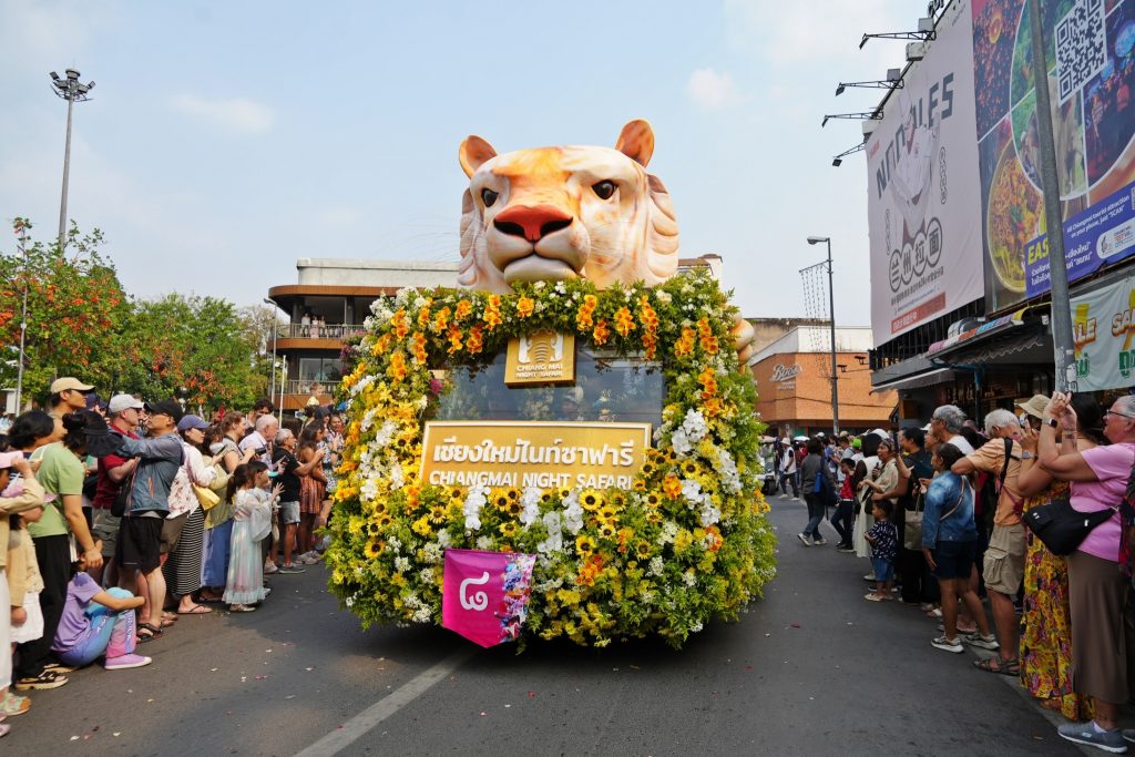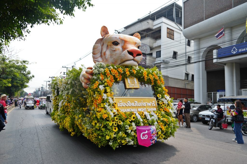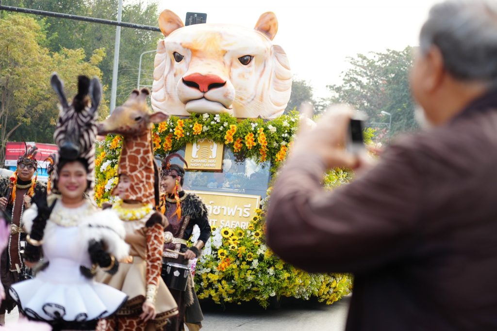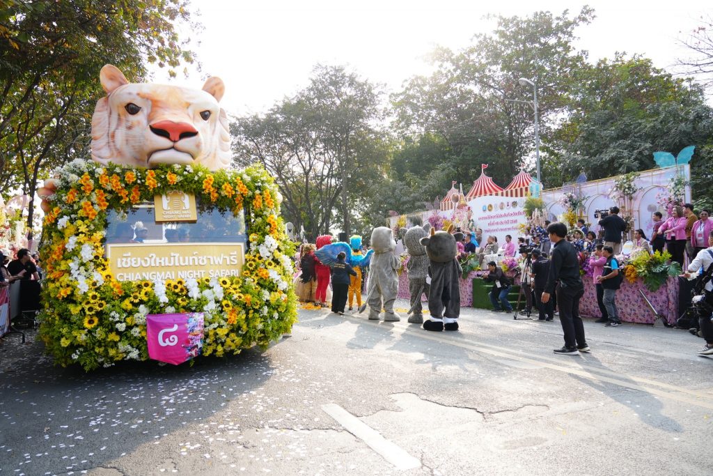 และในงานนี้เชียงใหม่ไนท์ซาฟารีได้ร่วมประดับประดาขบวนรถเป็นน้องเอวา พร้อมตกแต่งให้มีสีสันสวยงามด้วยเหล่าดอกไม้ เพื่อร่วมสร้างสีสันในขบวน