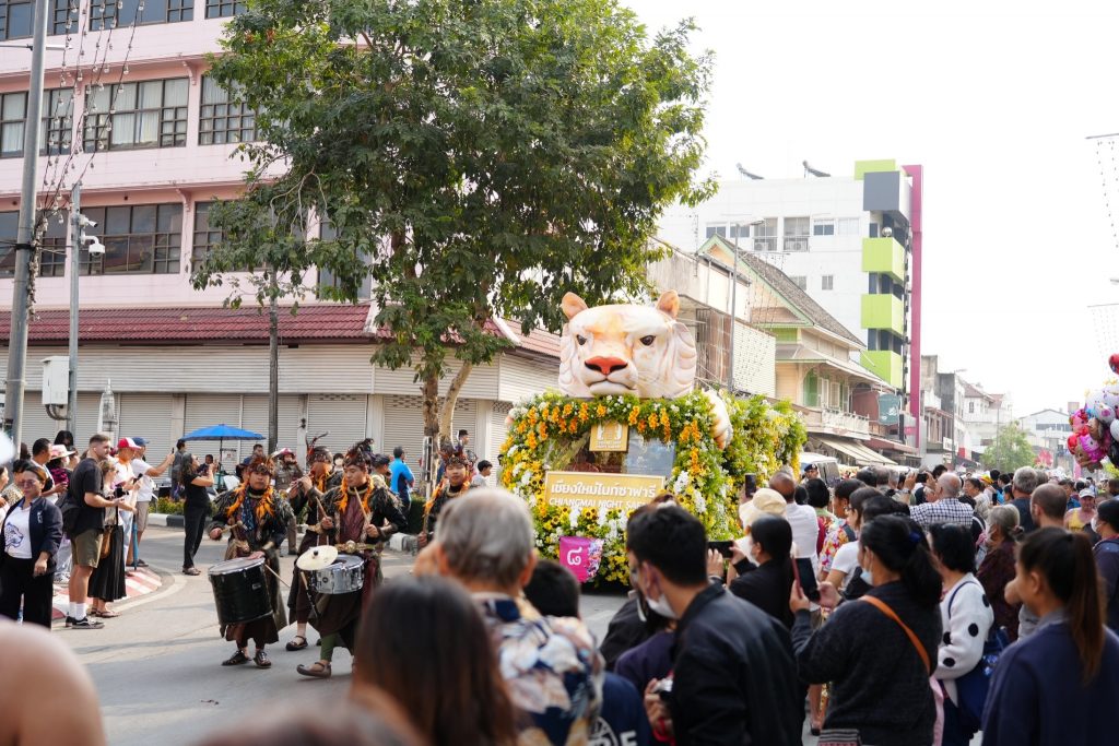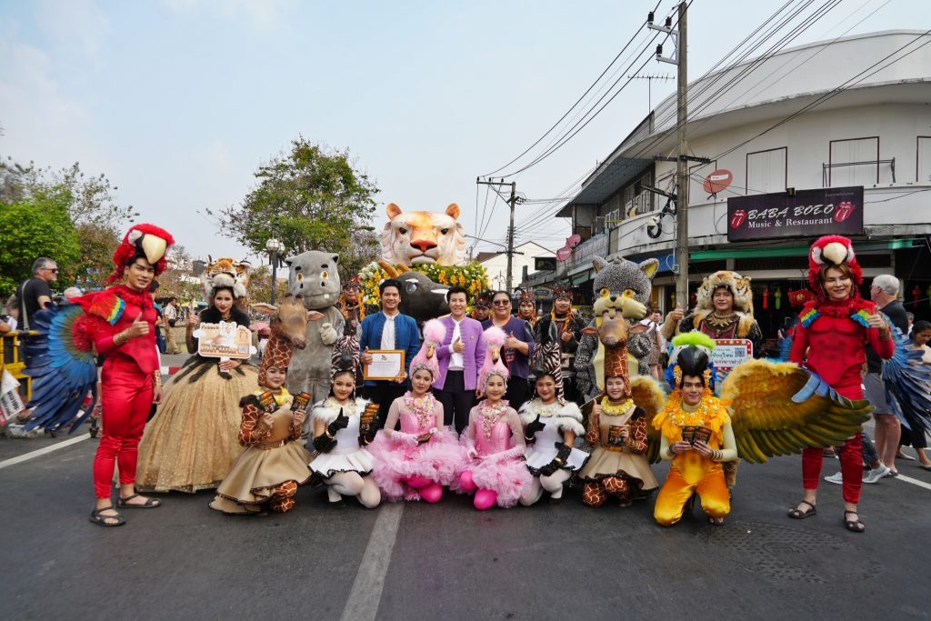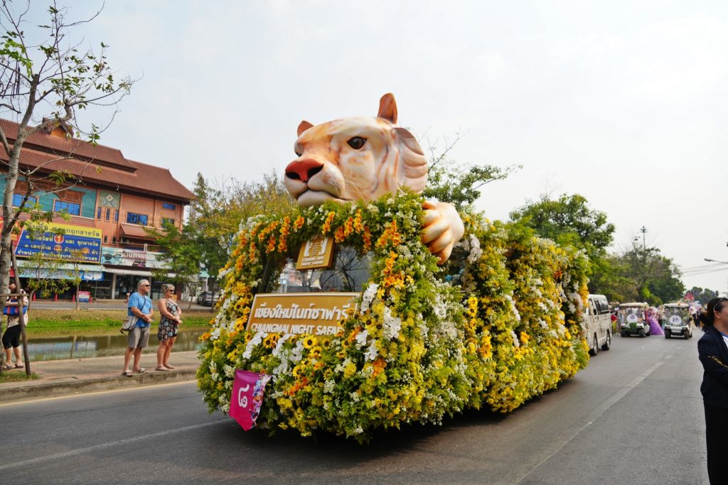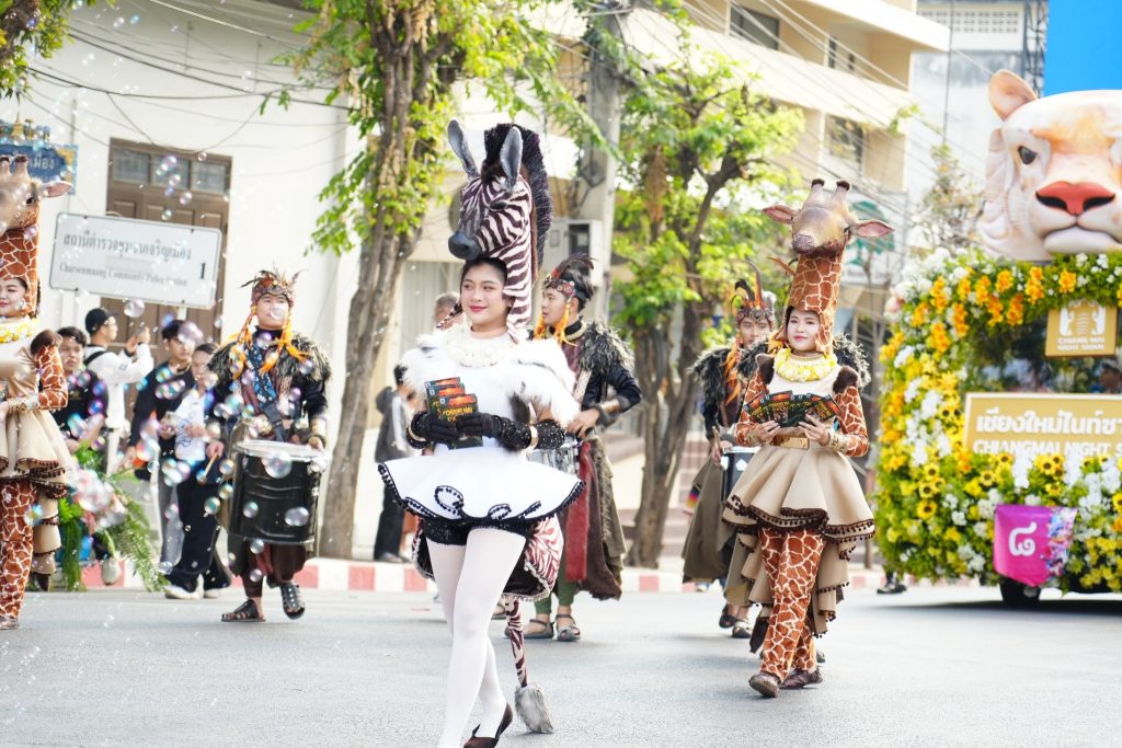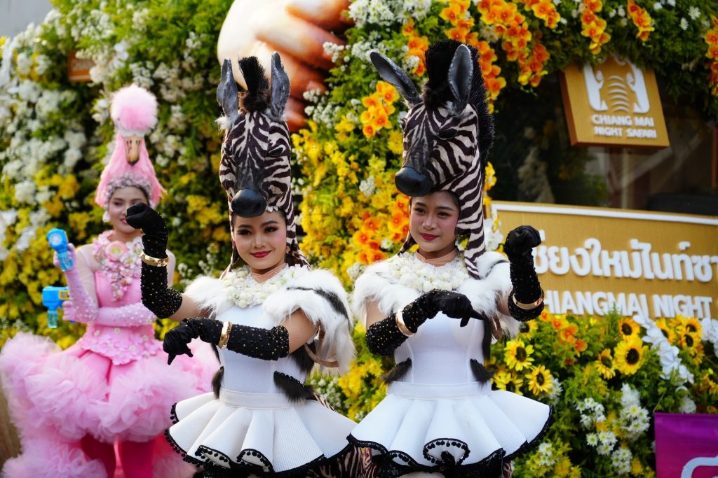 และในงานนี้เชียงใหม่ไนท์ซาฟารีได้ร่วมประดับประดาขบวนรถเป็นน้องเอวา พร้อมตกแต่งให้มีสีสันสวยงามด้วยเหล่าดอกไม้ เพื่อร่วมสร้างสีสันในขบวน