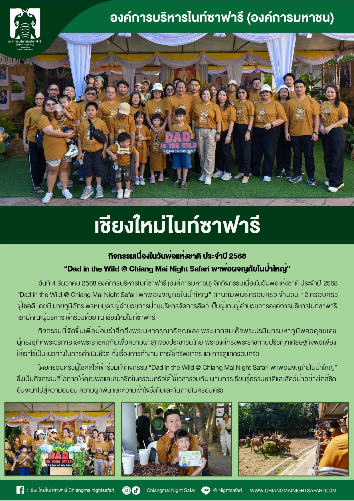 เชียงใหม่ไนท์ซาฟารี กิจกรรมเนื่องในวันพ่อแห่งชาติ ประจำปี 2568 “Dad in the Wild @ Chaiang Mai Night Safari พาพ่อผจญภัยในป่าใหญ่”