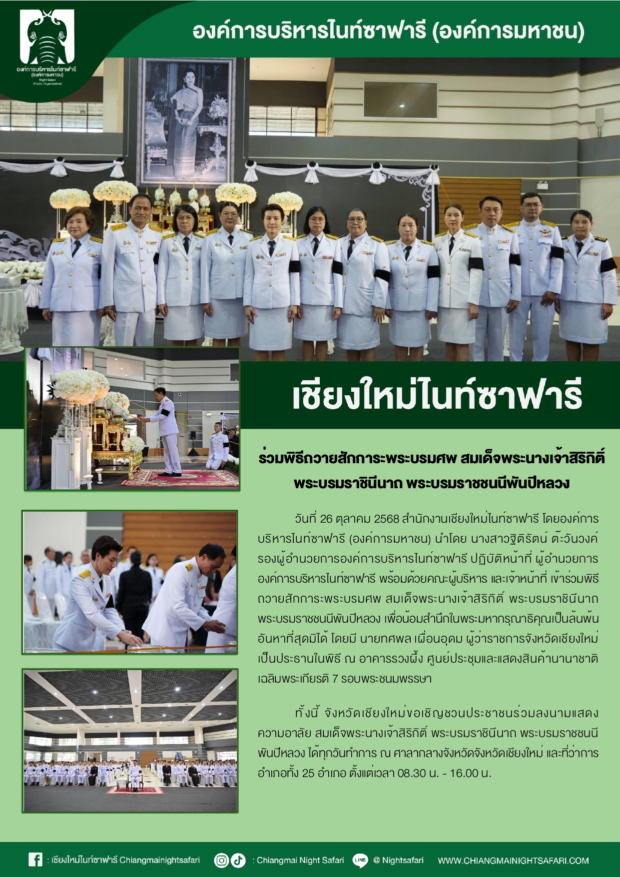 เชียงใหม่ไนท์ซาฟารี ร่วมพิธีถวายสักการะพระบรมศพ สมเด็จพระนางเจ้าสิริกิติ์ พระบรมราชินีนาถ พระบรมราชชนนีพันปีหลวง
