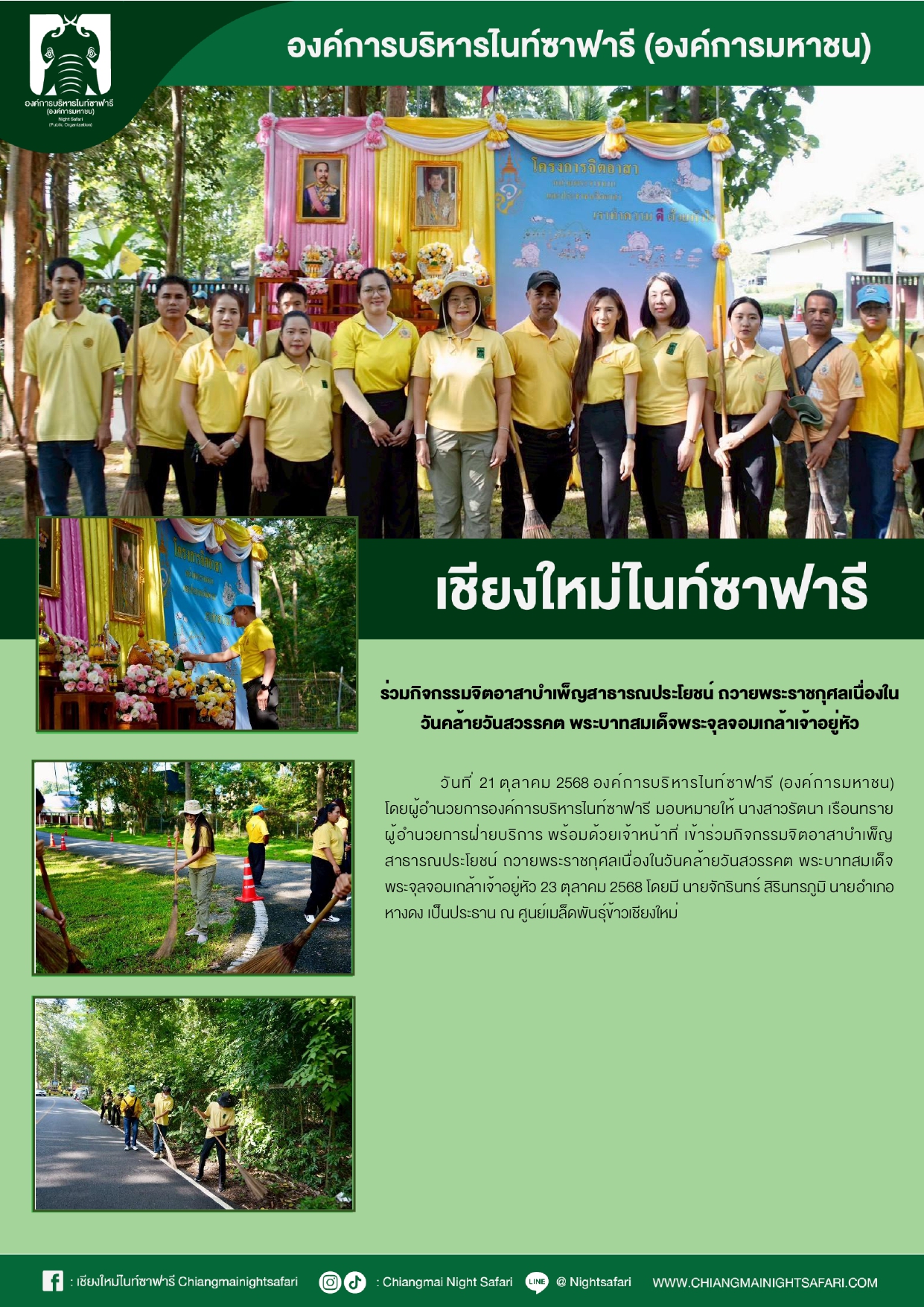 เชียงใหม่ไนท์ซาฟารี ร่วมกิจกรรมจิตอาสาบำเพ็ญสาธารณประโยชน์ ถวายพระราชกุศลเนื่องในวันคล้ายวันสวรรคต พระบาทสมเด็จพระจุลจอมเกล้าเจ้าอยู่หัว