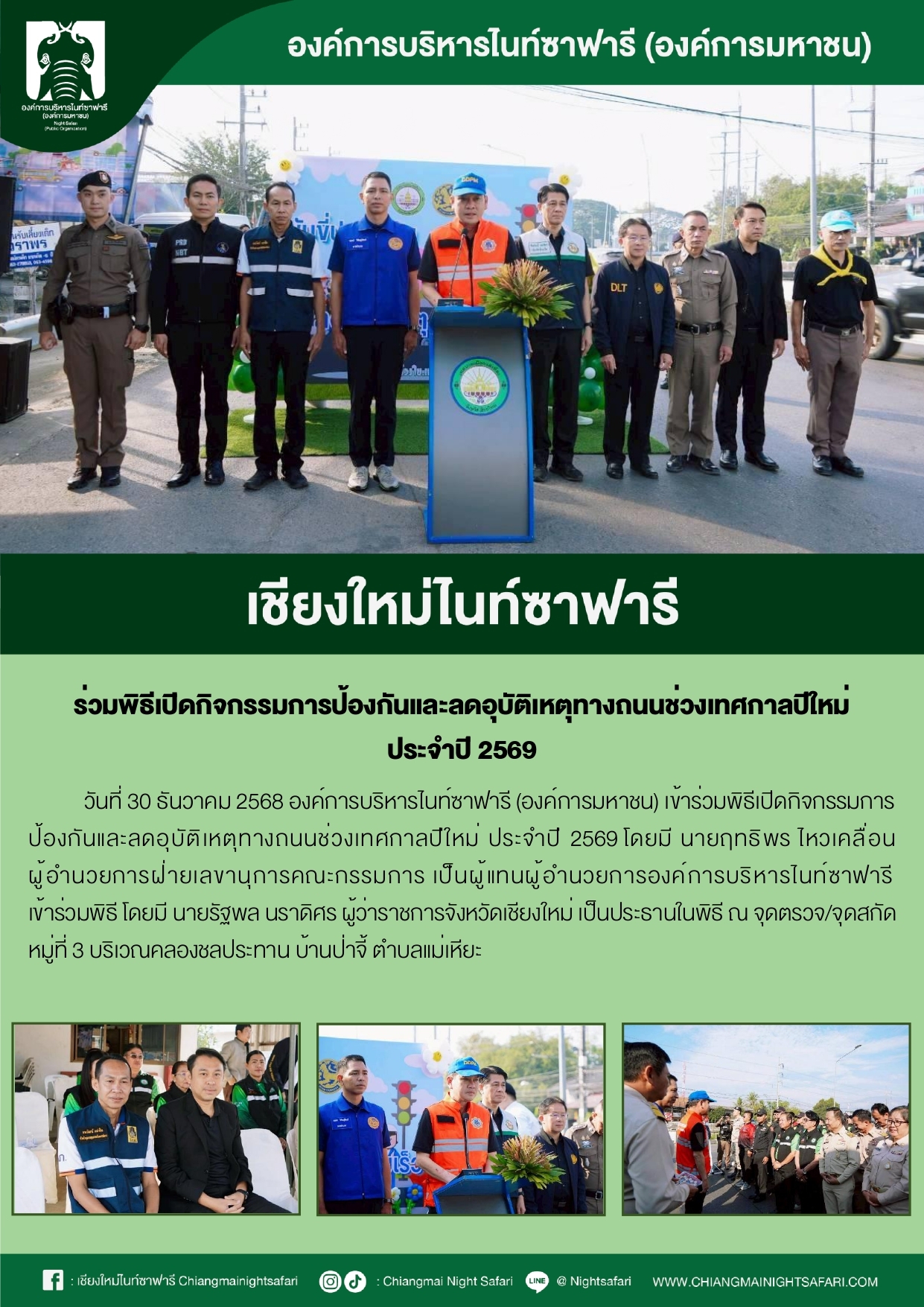เชียงใหม่ไนท์ซาฟารี ร่วมพิธีเปิดกิจกรรมการป้องกันและลดอุบัติเหตุทางถนนช่วงเทศกาลปีใหม่ ประจำปี 2569