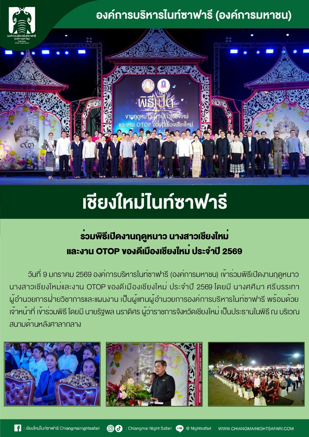 เชียงใหม่ไนท์ซาฟารี ร่วมพิธเปิดงานฤดูหนาว นางสาวเชียงใหม่ และงาน OTOP ของดีเมืองเชียงใหม่ ประจำปี 2569