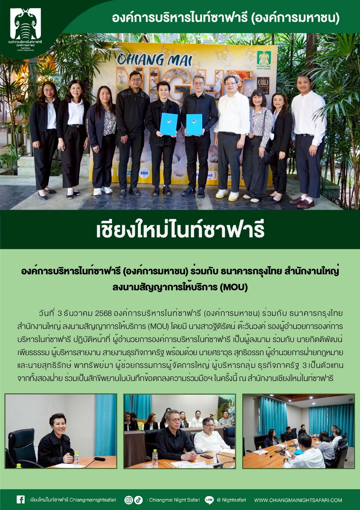 เชียงใหม่ไนท์ซาฟารี องค์การบริหารไนท์ซาฟารี (องค์การมหาชน) ร่วมกับธนาคารกรุงไทย สำนักงานใหญ่ ลงนามสัญญาการให้บริหาร (MOU)