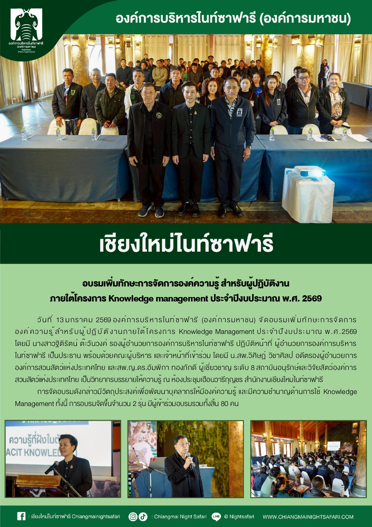 เชียงใหม่ไนท์ซาฟารี อบรมเพิ่มทักษะการจัดการองค์ความรู้ สำหรับผู้ปฏิบัติงานภายใต้โครงการ Knowledge management ประจำปีงบประมาณ พ.ศ.2569
