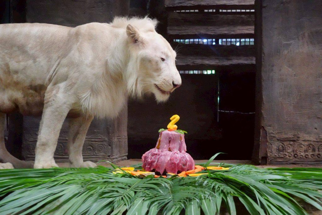 เชียงใหม่ไนท์ซาฟารี ฉลองวันเกิด “จาคอป” ลูกสิงโตขาว อายุครบ 2 ขวบ