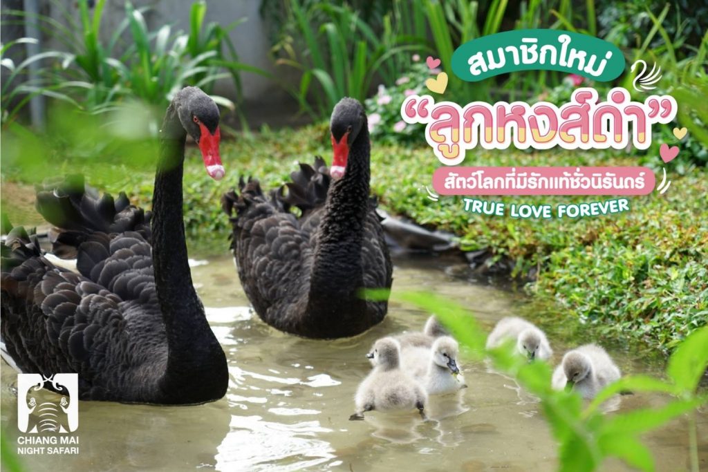 นายสายสิทธิ์ เจตสิกทัต ปฏิบัติหน้าที่แทน ผู้อำนวยการสำนักงานพัฒนาพิงคนคร เปิดเผยว่า เชียงใหม่ไนท์ซาฟารี ได้ต้อนรับสมาชิกใหม่ที่เกิดในเดือนแห่งความรัก “ลูกหงส์ดำ” (Black swan) จำนวน 5 ตัว เกิดเมื่อวันที่ 15 กุมภาพันธ์ 2565 ที่ผ่านมา ขณะนี้ “ลูกหงส์ดำ” มีสุขภาพร่างกายแข็งแรงดี และได้รับการเลี้ยงดูแบบธรรมชาติจากพ่อและแม่ โดยอยู่ภายใต้การดูแลของเจ้าหน้าที่ ซึ่ง “หงส์” เป็นหนึ่งในสัตว์โลกที่มีรักเดียวใจเดียว เป็นรักแท้ชั่วนิรันดร์ เนื่องจากหงส์เป็นสัตว์ที่มีคู่เดียวไปตลอดชีวิต หากคู่ของมันตายไปก็จะไม่เปิดใจรับหงส์ตัวใหม่เข้ามาในชีวิตของมันอีกเลย และเมื่อหงส์ 2 ตัว ว่ายน้ำคู่กันมักจะโค้งคอเข้าหากันจนกลายเป็นรูปหัวใจ จึงกลายเป็นสัญลักษณ์ความรักและมักใช้ในงานวิวาห์อีกด้วย