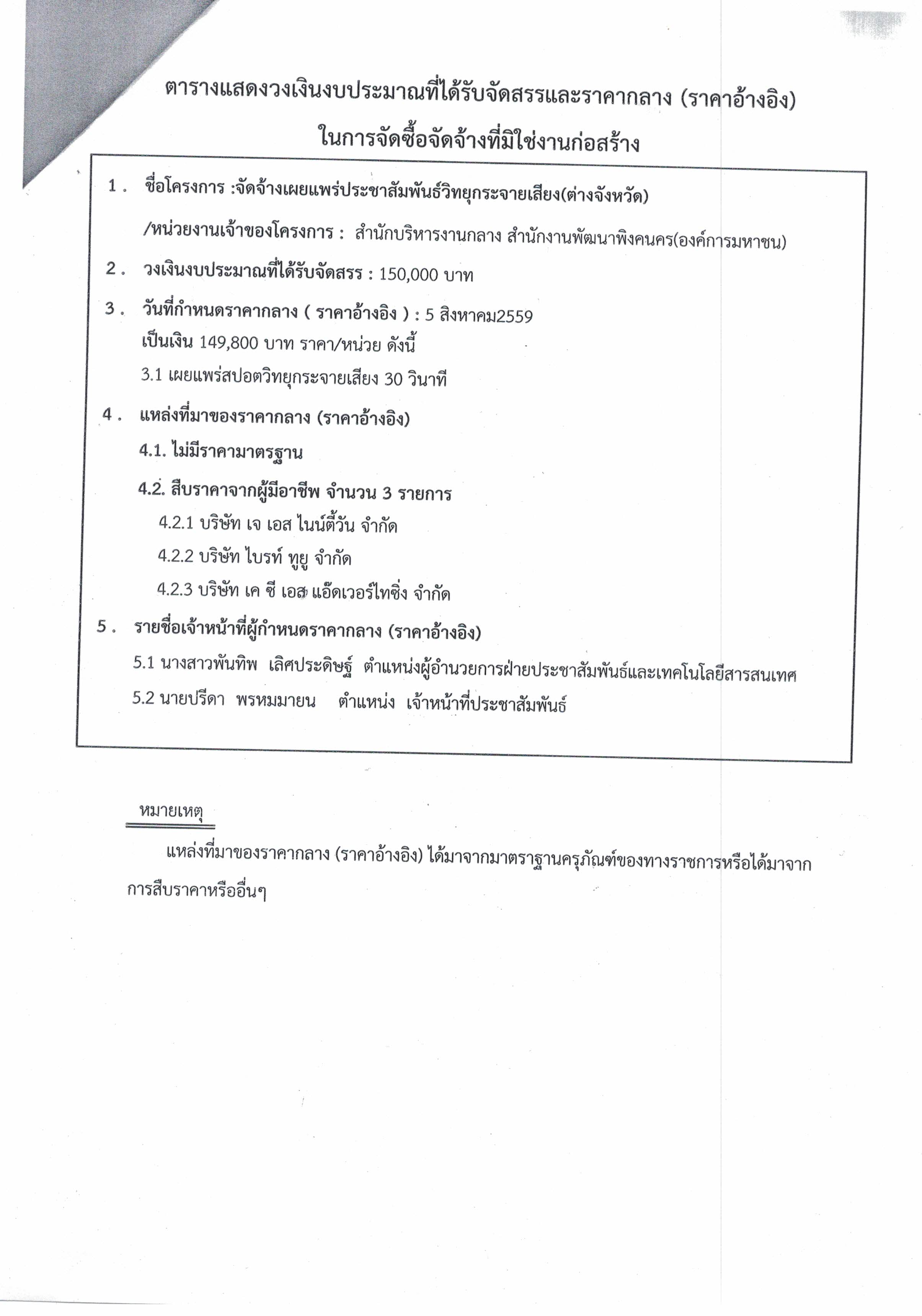 (ภาษาไทย) จัดจ้างเผยแพร่ประชาสัมพันธ์วิทยุกระจายเสียง (ต่างจังหวัด)