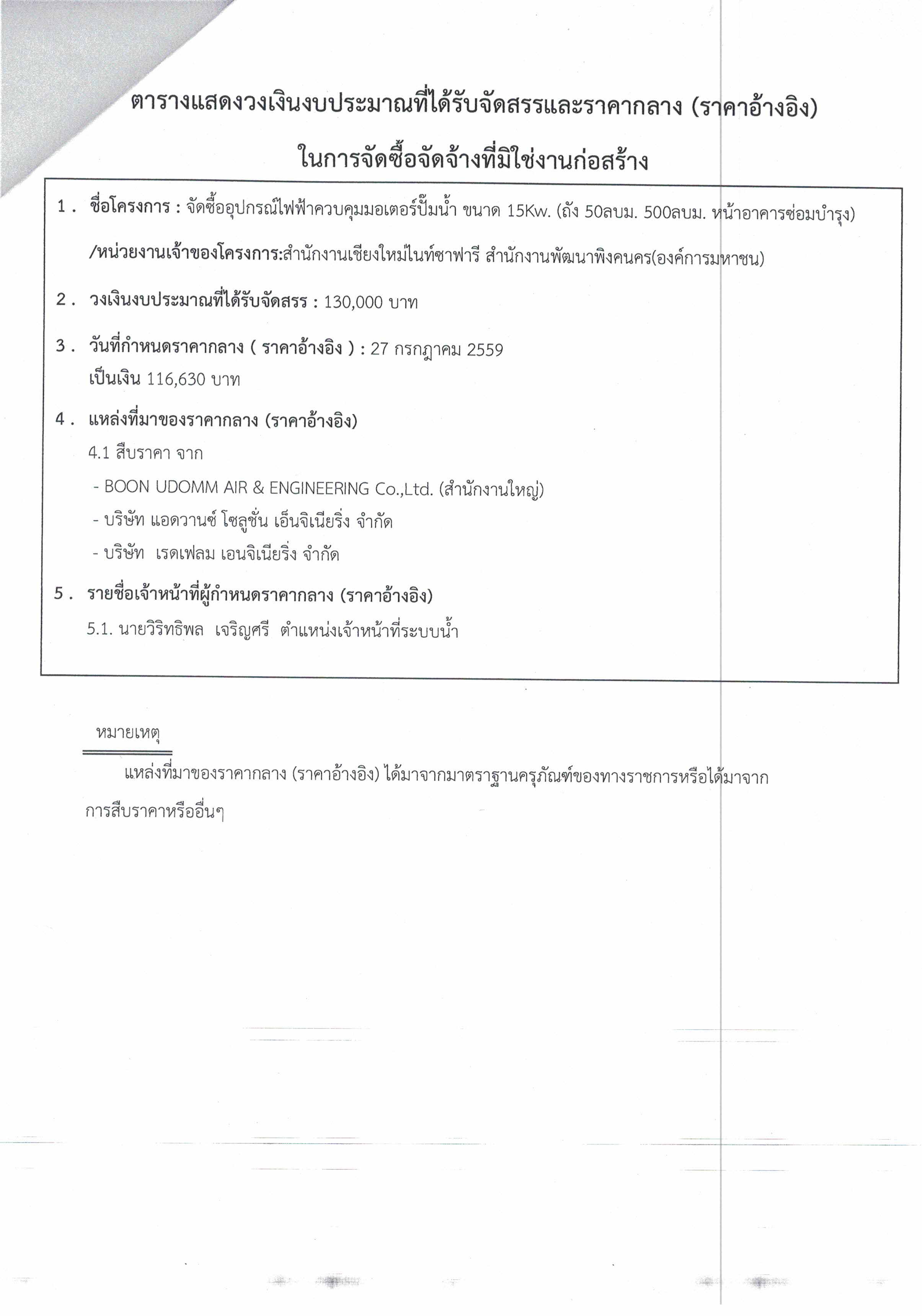 (ภาษาไทย) จัดซื้ออุปกรณ์ไฟฟ้าควบคุมมอเตอร์ปั๊มน้ำ ขนาด 15 Kw. (ถัง 50 ลบม. 500 ลบม. หน้าอาคารซ่อมบำรุง)
