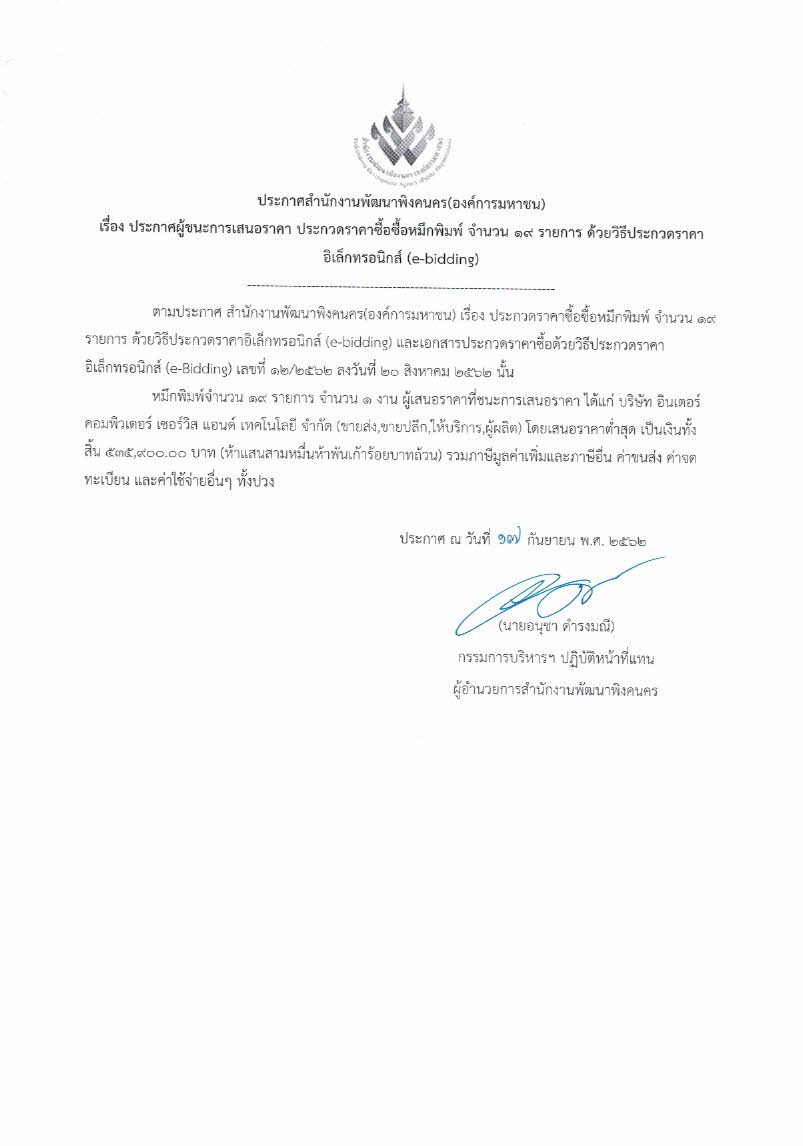 (ภาษาไทย) ประกาศผู้ชนะการเสนอราคา ประกวดราคาจัดซื้อหมึกพิมพ์ จำนวน 19 รายการ ด้วยวิธีประกวดราคาอิเล็กทรอนิกส์ (e-bidding)