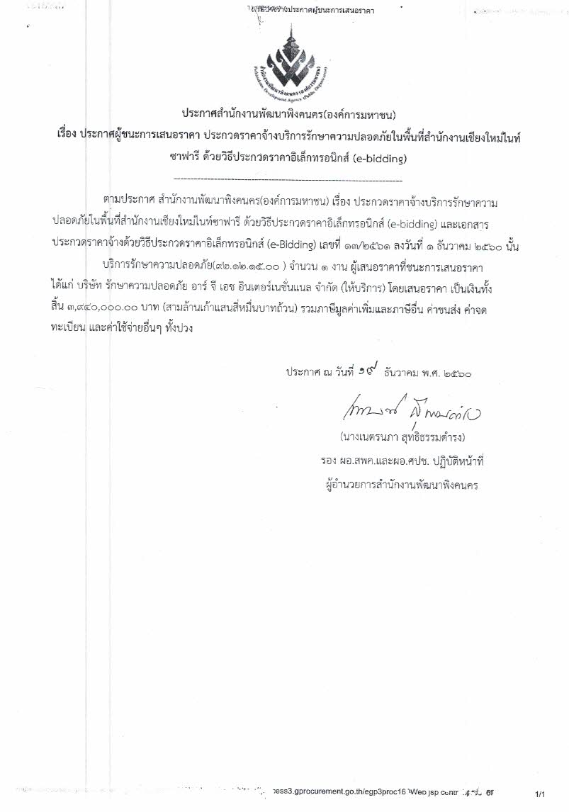 (ภาษาไทย) ประกาศผู้ชนะการเสนอราคา