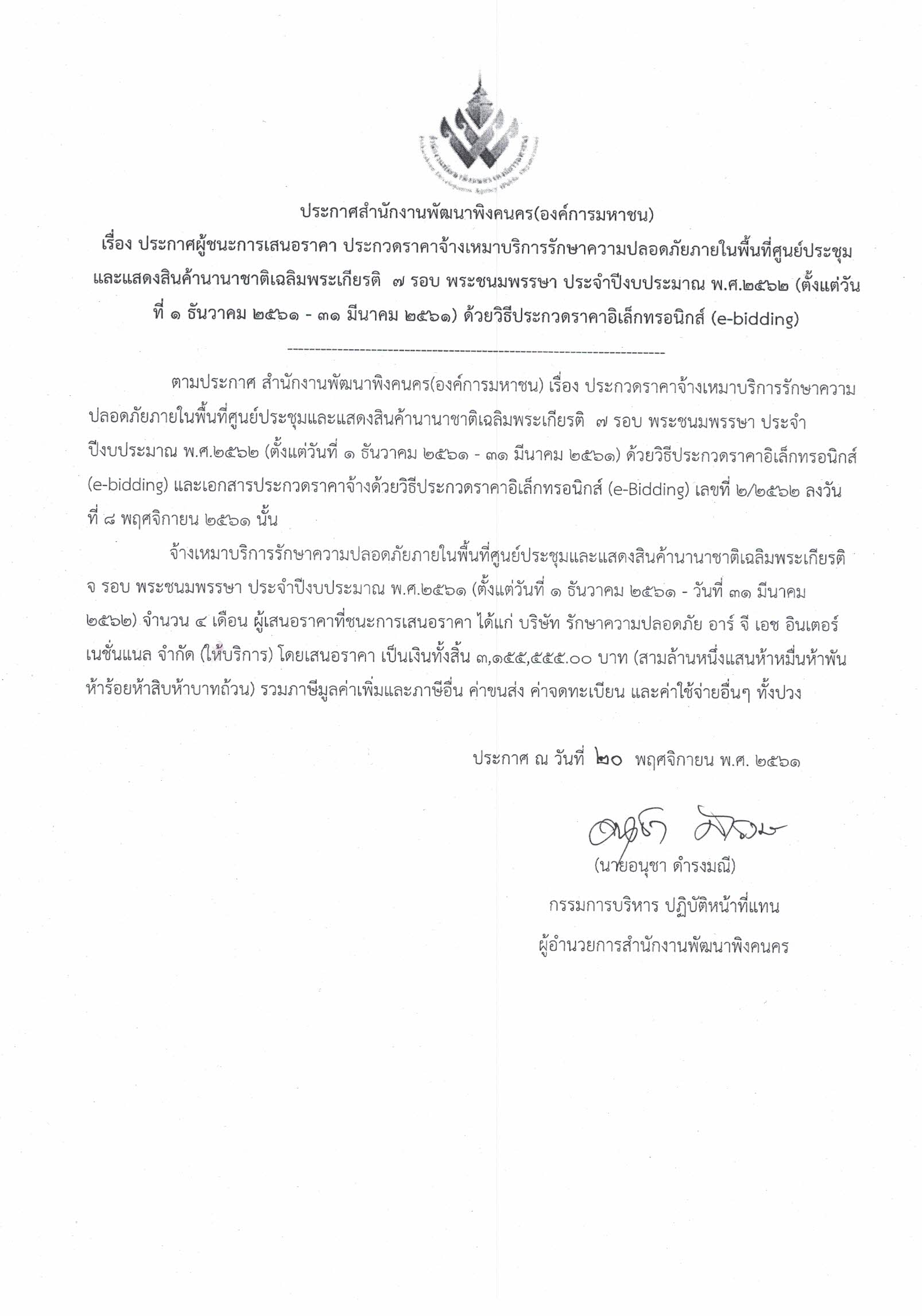 (ภาษาไทย) ประกาศผู้ชนะการเสนอราคา ประกวดราคาจ้างเหมารักษาความปลอดภัยในพื้นที่ศูนย์ประชุมฯ