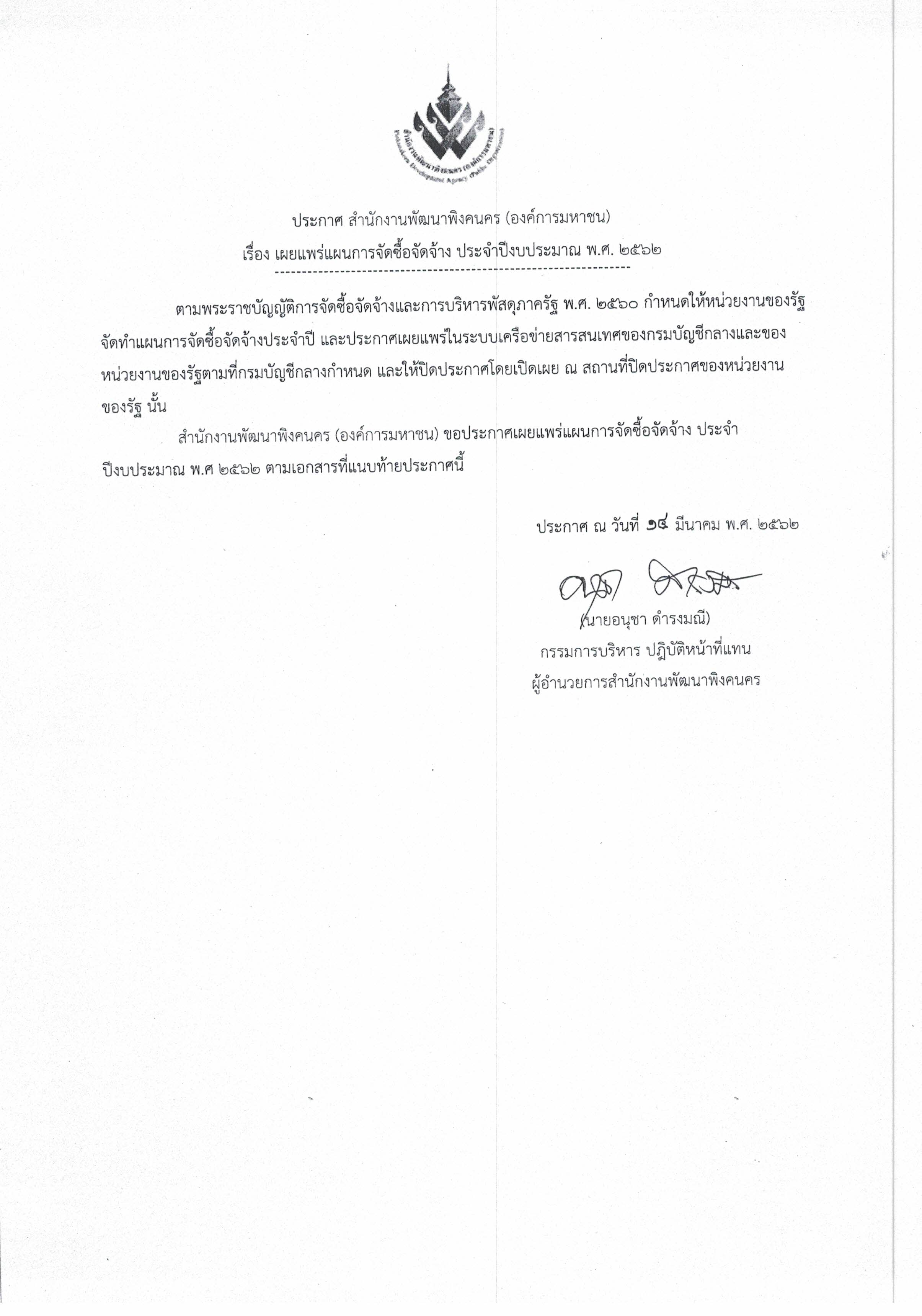 เอกสารเผยแพร่แผนการจัดซื้อจัดจ้าง ประจำปีงบประมาณ พ.ศ.2562