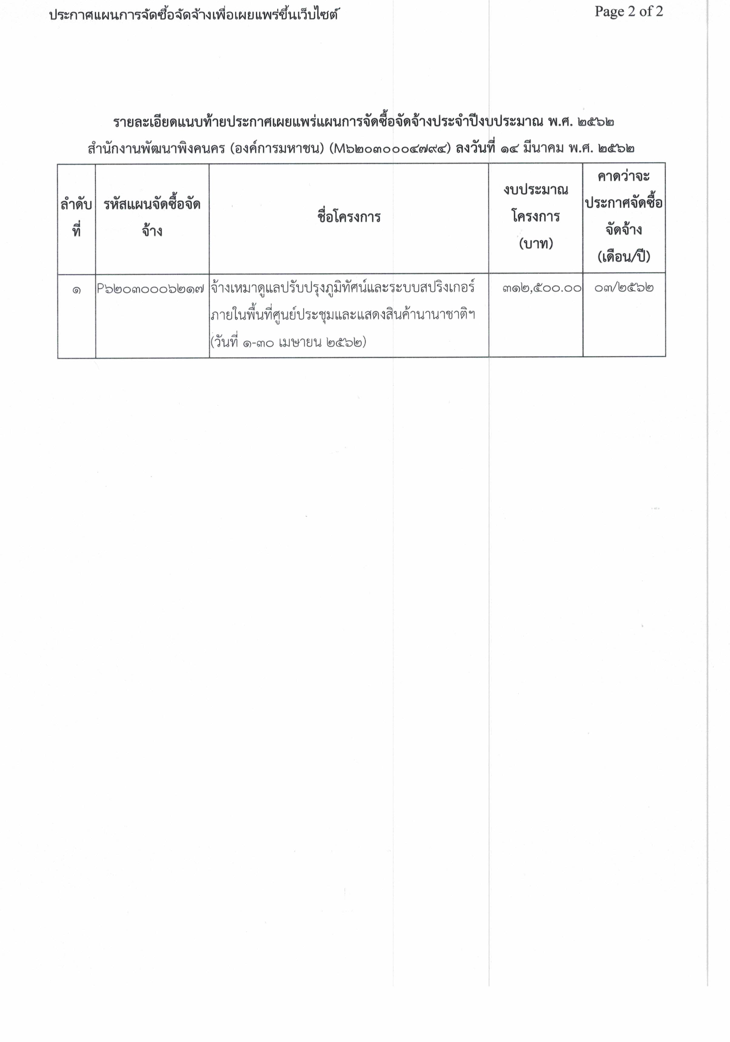 (ภาษาไทย) เผยแพร่แผนการจัดซื้อจัดจ้าง ประจำปีงบประมาณ พ.ศ.2562
