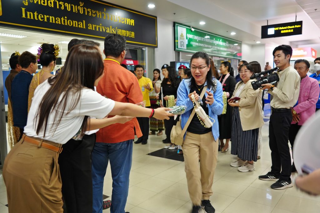 วันที่ 27 มีนาคม 2568 สำนักงานพัฒนาพิงคนคร (องค์การมหาชน) โดยผู้อำนวยการสำนักงานพัฒนาพิงคนคร ได้มอบหมายให้ นางสาวภัทราภรณ์ บิลมาศ หัวหน้างานประชาสัมพันธ์ และนางสาวพิกุลรัตน์ ภูผิวผาวรัชญ์ หัวหน้างานบริหารการขายและรับจอง พร้อมด้วยการท่องเที่ยวแห่งประเทศไทย (ททท.) สำนักงานเชียงใหม่ และการท่องเที่ยวแห่งประเทศไทย (ททท.) สำนักงานเฉิงตู เข้าร่วมต้อนรับนักท่องเที่ยวเที่ยวบินปฐมฤกษ์จากสายการบิน Chengdu Ailine เส้นทางเฉิงตู-เชียงใหม่ รวมผู้โดยสารทั้งหมดจำนวน 180 คน เพื่อสร้างความประทับใจและสร้างความเชื่อมั่น เพื่อกระตุ้นให้เกิดการเดินทางของนักท่องเที่ยวชาวไทยและชาวต่างชาติ ณ ท่าอากาศยานจังหวัดเชียงใหม่