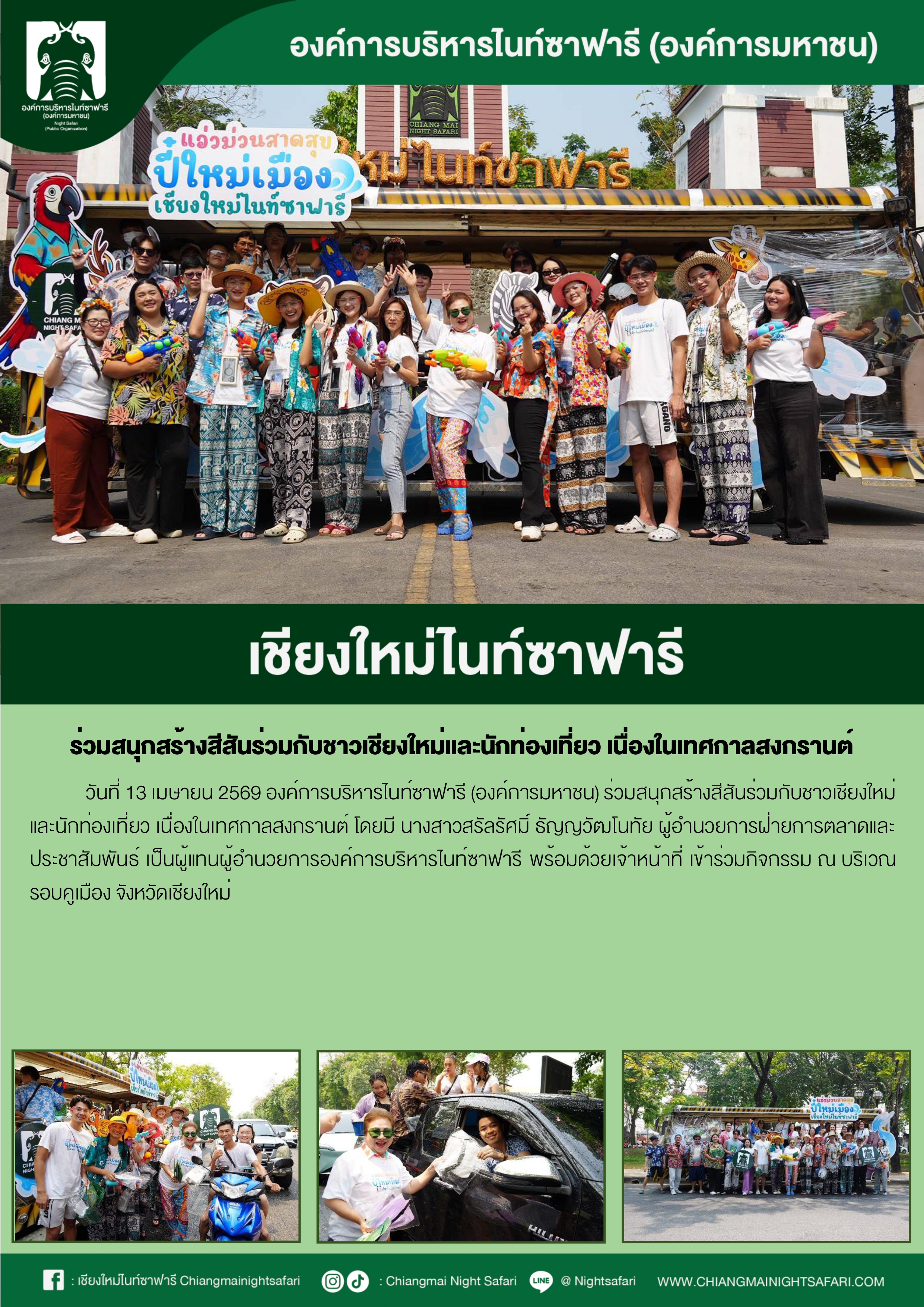 เชียงใหม่ไนท์ซาฟารี ร่วมสนุกสร้างสีสันร่วมกับชาวเชียงใหม่และนักท่องเที่ยว เนื่องในเทศกาลสงกรานต์