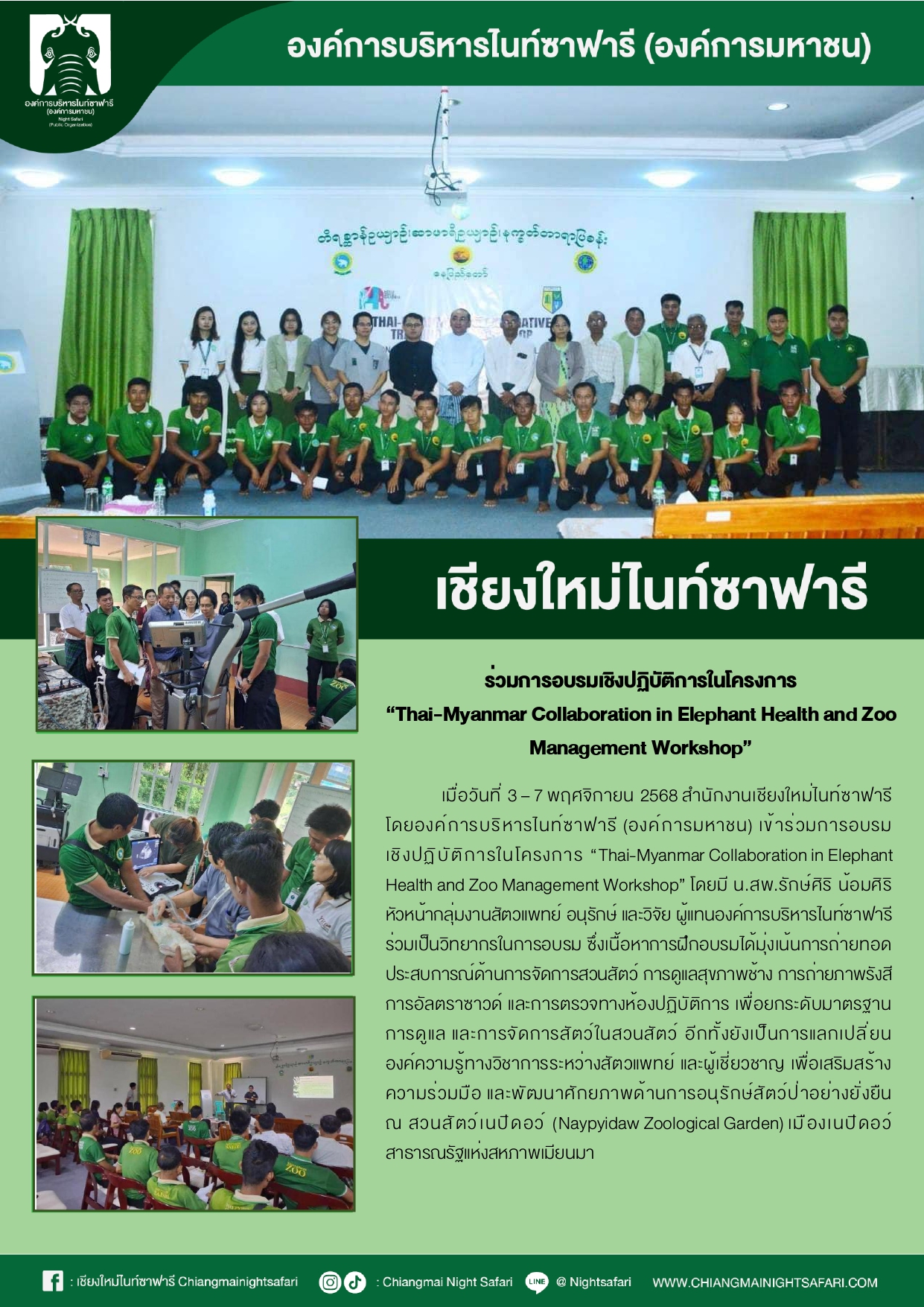 เชียงใหม่ไนท์ซาฟารี ร่วมการอบรมเชิงปฏิบัติการในโครงการ “Thai-Myanmar Collaboration in Elephant Health and Zoo Management Workshop”
