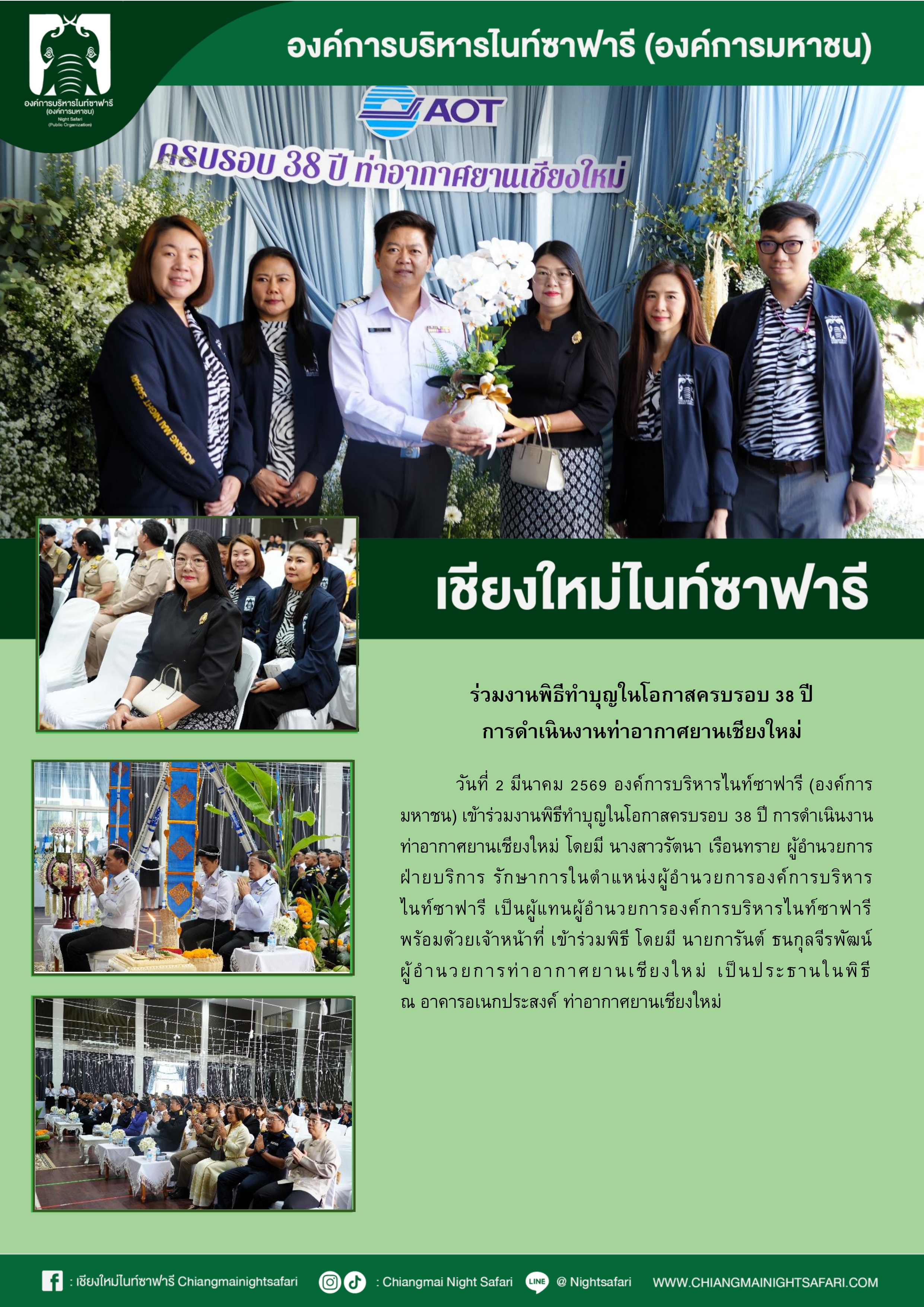 เชียงใหม่ไนท์ซาฟารี ร่วมงานพิธีทำบุญในโอกาสครบรอบ 38 การดำเนินงานท่าอากาศยานเชียงใหม่