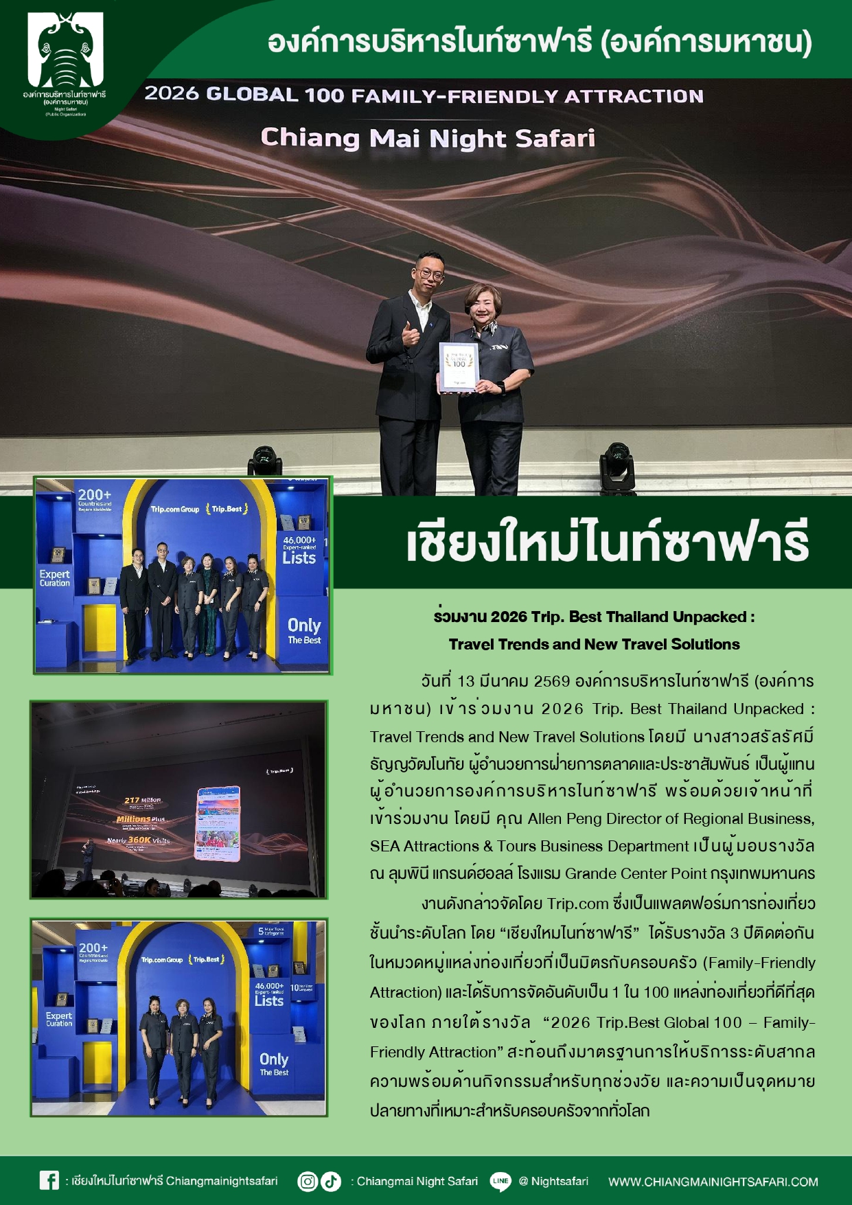 เชียงใหม่ไนท์ซาฟารี ร่วมงาน 2026 Trip. Best Thailand Unpacked : Travel Trends and New Travel Solutlons