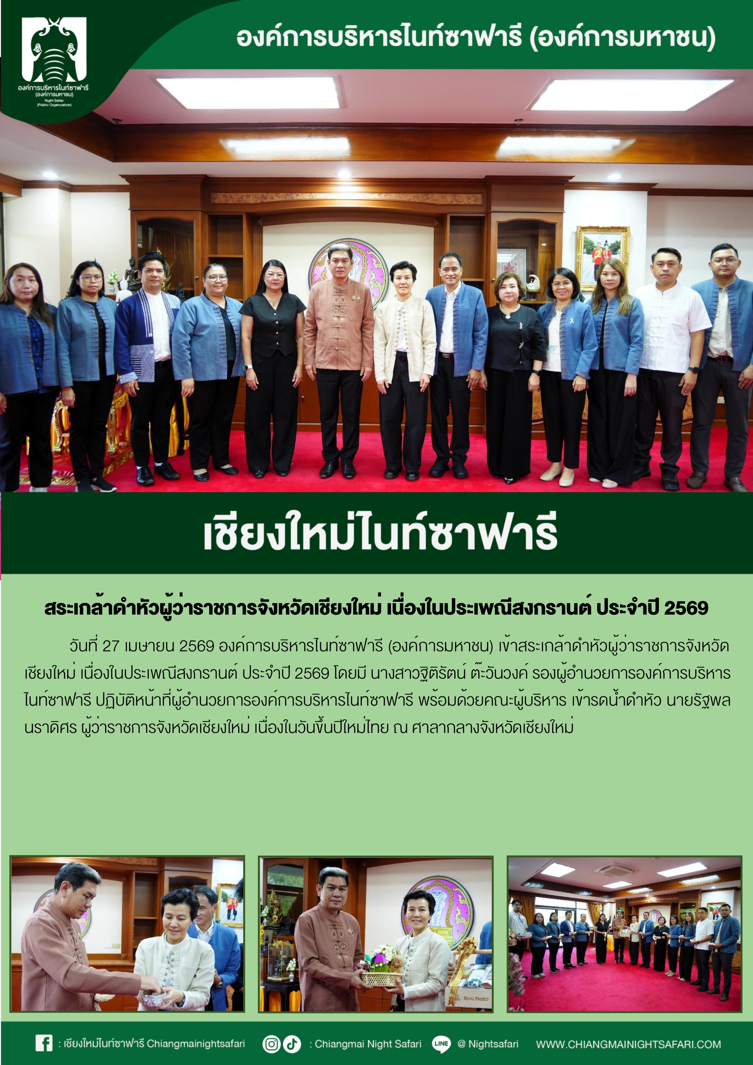 เชียงใหม่ไนท์ซาฟารี สระเกล้าดำหัวผู้ว่าราชการจังหวัดเชียงใหม่ เนื่องในประเพณีสงกรานต์ ประจำปี 2569