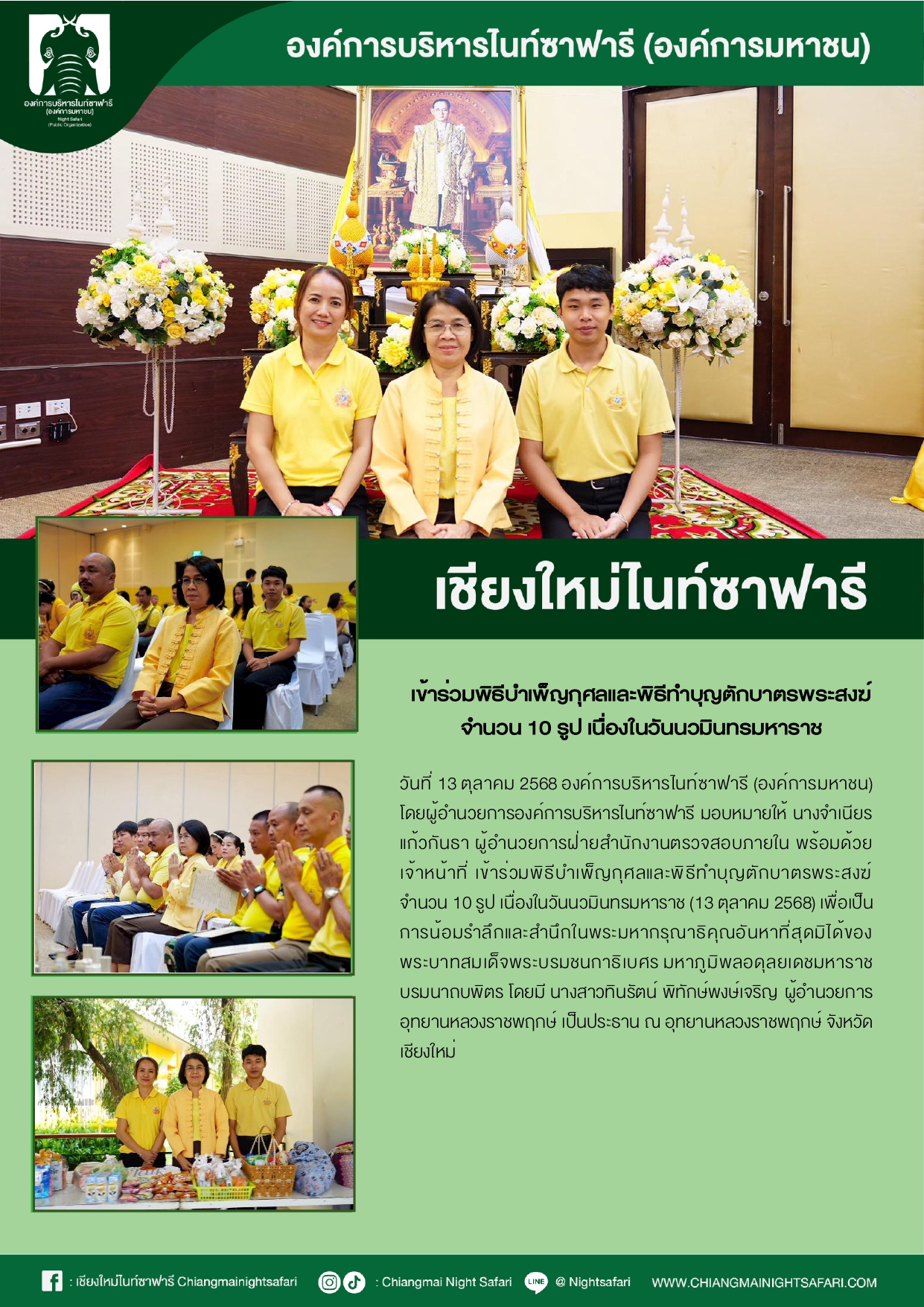 เชียงใหม่ไนท์ซาฟารี เข้ารว่มพิธีบำเพ็ญกุศลและพิธีทำบุญตักบาตรพระสงฆ์ จำนวน 10 รูป เนื่องในวันนวมินทรมหาราช