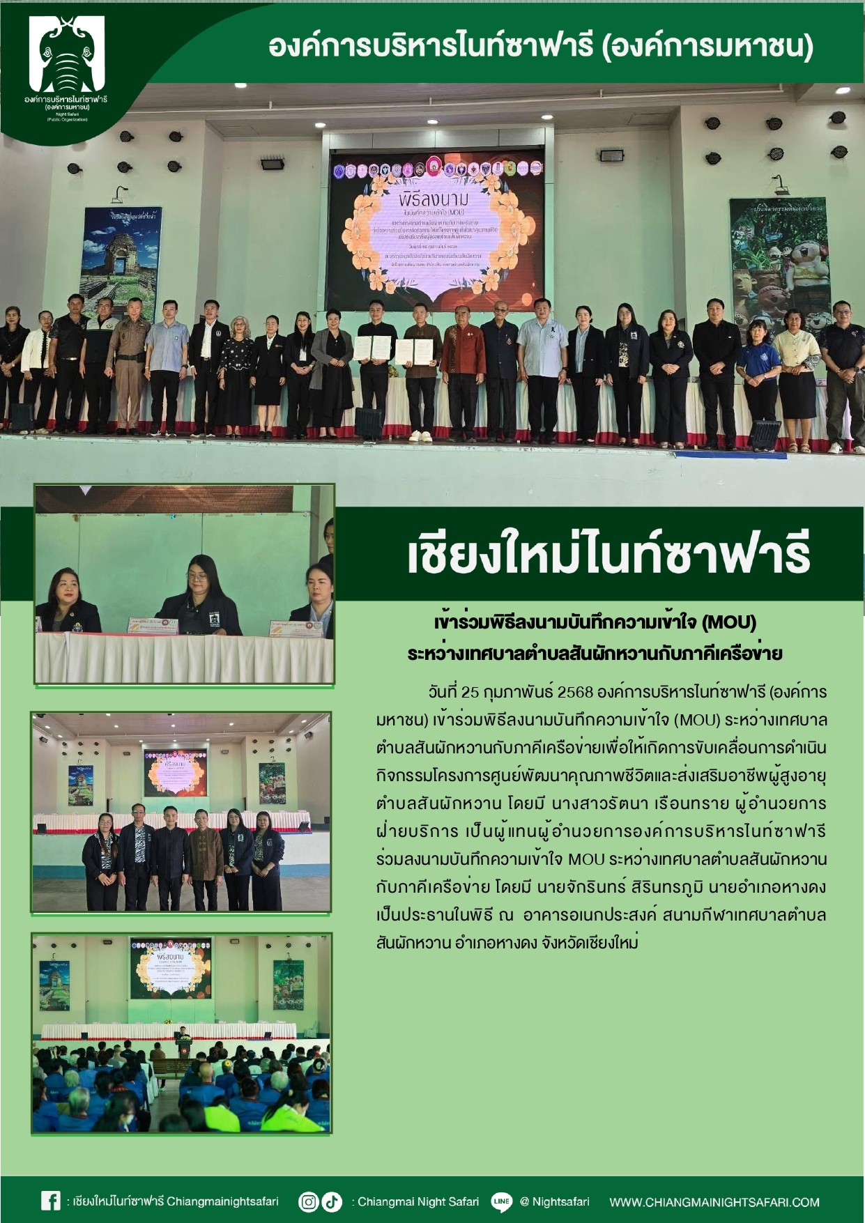 เชียงใหม่ไนท์ซาฟารี เข้าร่วมพิธีลงนามบันทึกความเจ้าใจ (MOU) ระหว่างเทศบาลตำบลสันผักหวานกับภาคีเครือข่าย