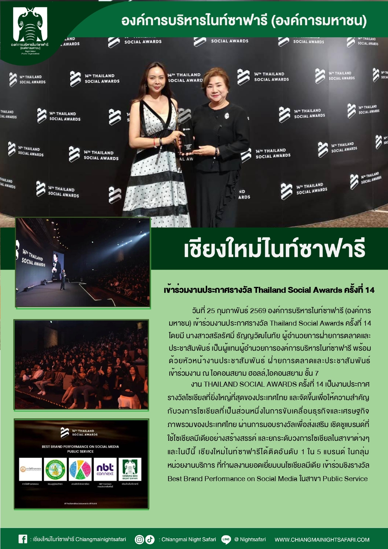 เชียงใหม่ไนท์ซาฟารี เข้าร่วมงานประกาศรางวัล Thailand Social Awards ครั้งที่ 14