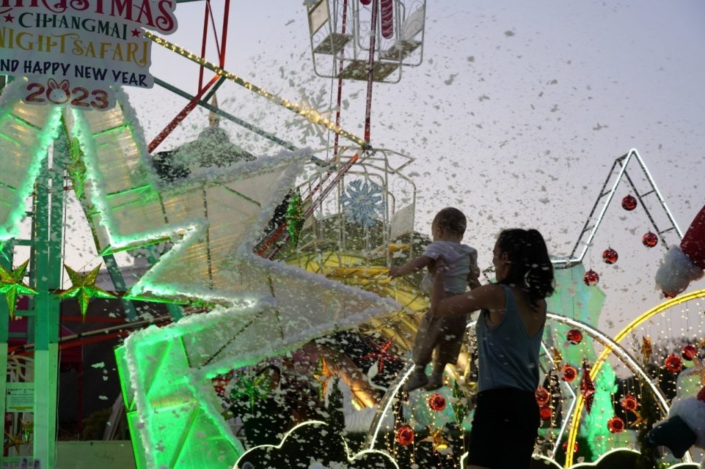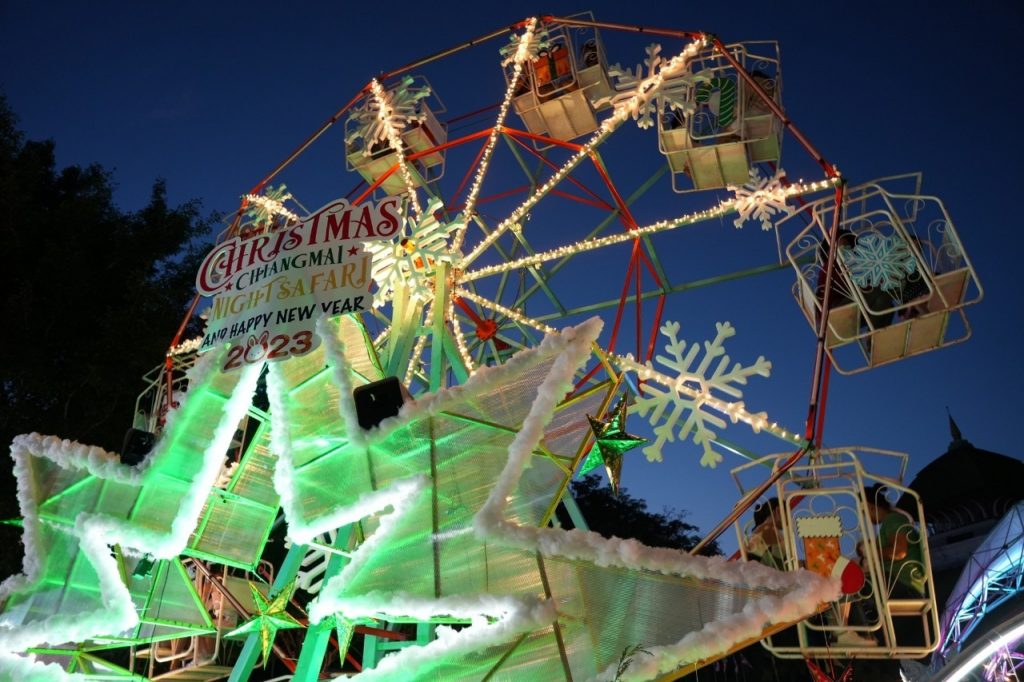 วันที่ 24 ธันวาคม 2565 – 1 มกราคม 2566 เชียงใหม่ไนท์ซาฟารีกลายเป็นดินแดนแห่งเทศกาลคริสต์มาสและต้อนรับปีใหม่ พร้อมชวนนักท่องเที่ยวรับลมหนาวพร้อมชมวิวมุมสูงไปกับต้นคริสต์มาสชิงช้าสวรรค์ที่ตกแต่งในธีมคริสต์มาส พร้อมด้วยบ้านบอลอิกลูของชาวเอสกิโม ที่เหมือนยกฟินแลนด์มาไว้ที่นี่ และพบกับบรรยากาศหิมะตกสุดฟิน ถ่ายรูปเช็คอินยาวไปจนถึงปีใหม่ และพิเศษกว่านั้น ในวันคริสต์มาส 25 ธันวาคม พบกับซานตาคลอสแจกของขวัญ แซนตี้แดนซ์ซิ่งโชว์ และโชว์มายากล บอกเลยว่างานนี้ฟรีทั้งงาน (เครื่องเล่น เริ่มตั้งแต่ 17.00 น. เป็นต้นไป)