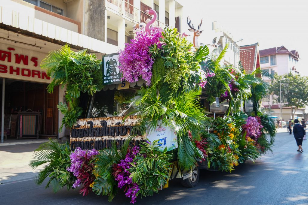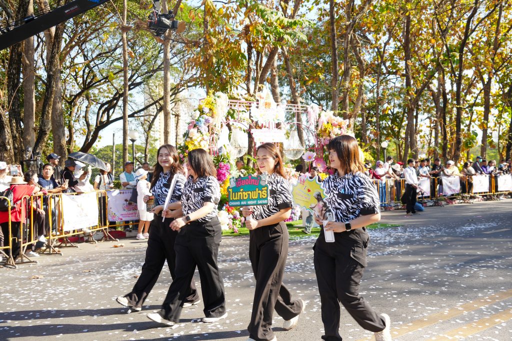 ทั้งนี้ เชียงใหม่ไนท์ซาฟารีได้ร่วมประดับตกแต่งขบวนรถบุปผชาติอย่างสวยงาม ด้วยดอกไม้นานาพันธุ์ สีสันสดใส ภายใต้แนวคิด “บุปผาราชินีก้องเกริกฟ้า เลอค่านครพิงค์” เพื่อร่วมสร้างความตระการตาและเติมเต็มบรรยากาศแห่งความงดงามให้กับขบวนแห่อันยิ่งใหญ่ของจังหวัดเชียงใหม่