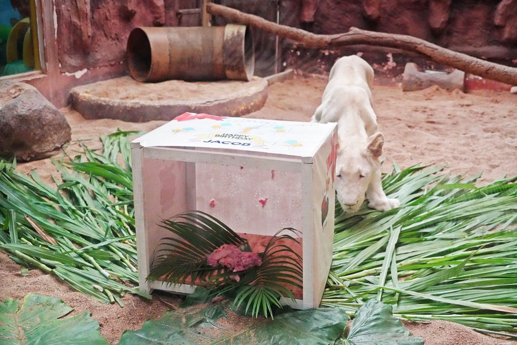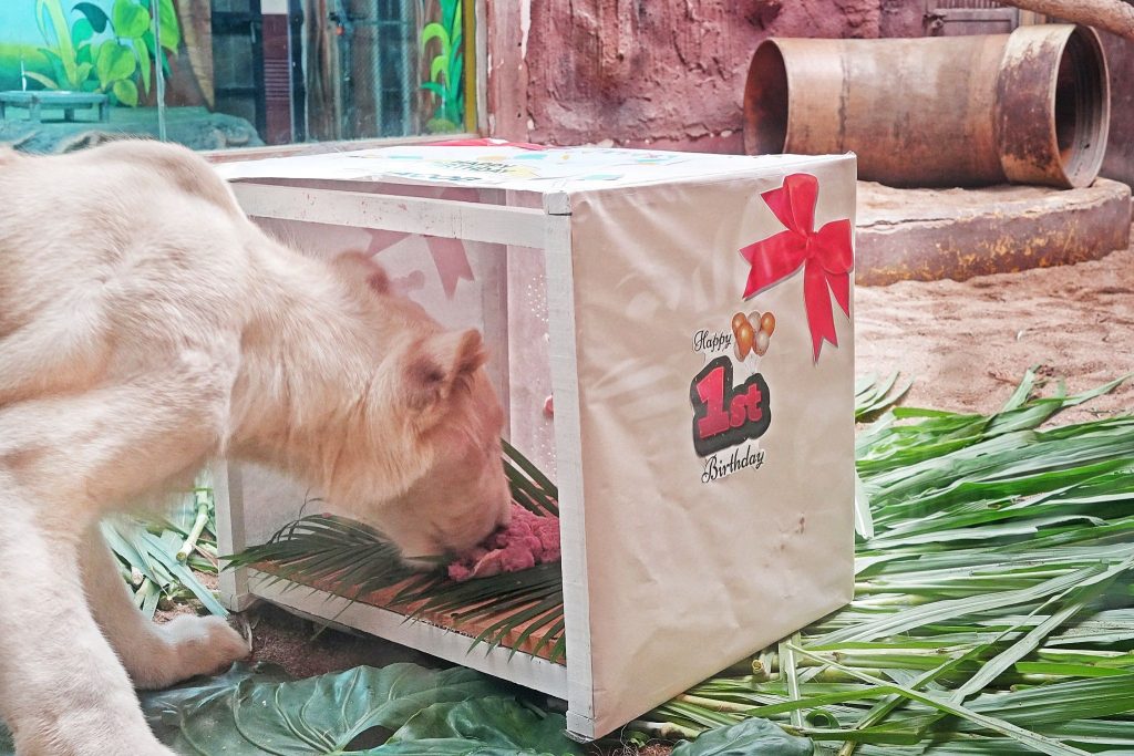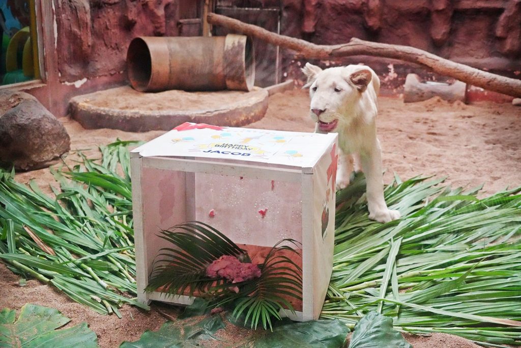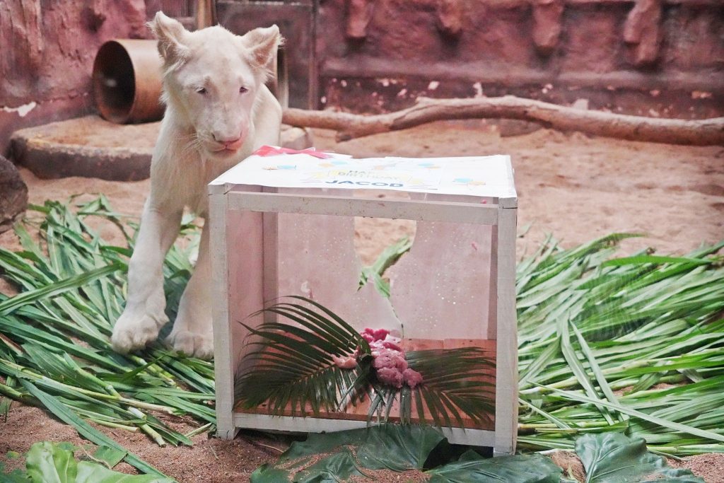 เชียงใหม่ไนท์ซาฟารี ฉลองวันเกิด “จาคอป” ลูกสิงโตขาว อายุครบ 1 ขวบ