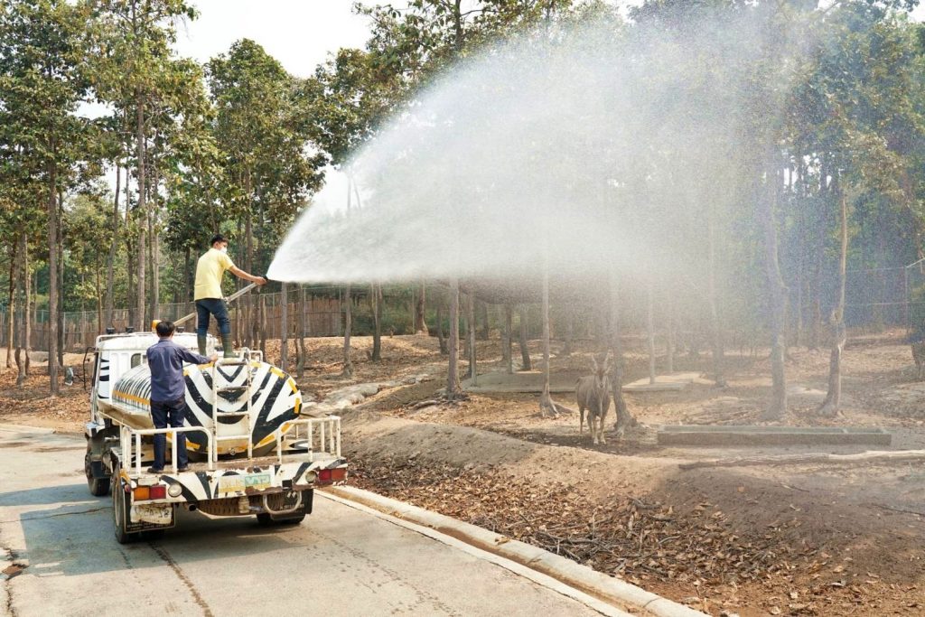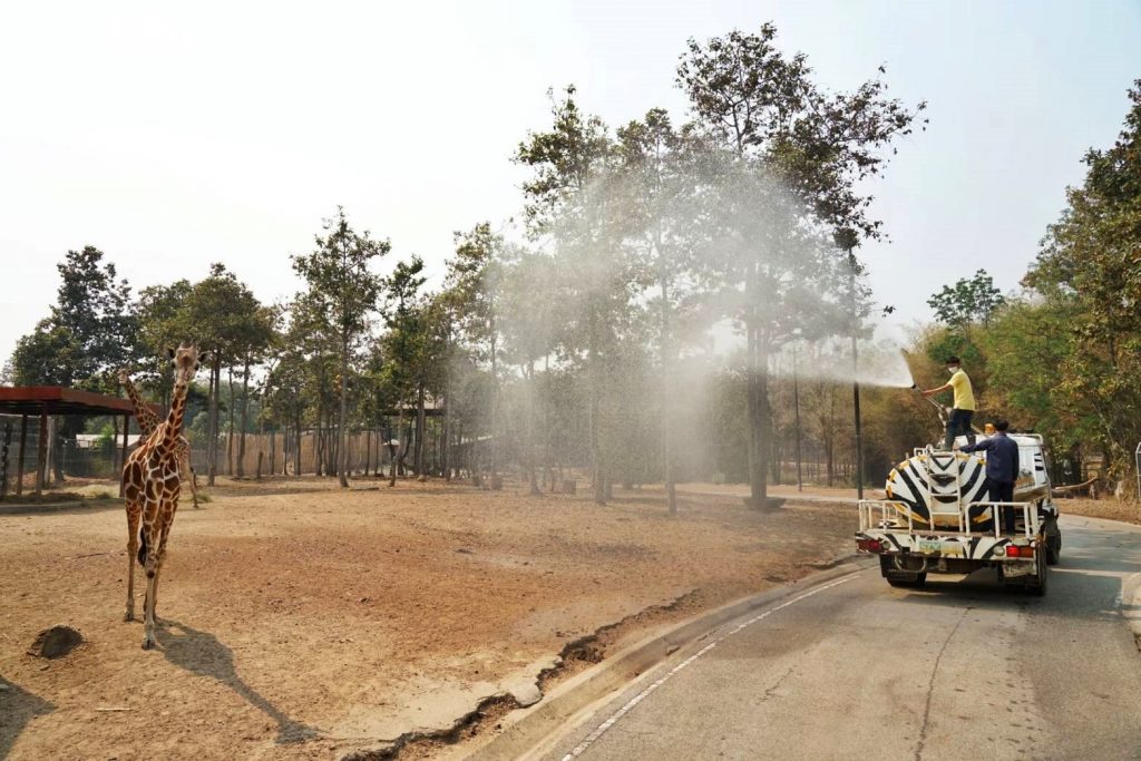 เชียงใหม่ไนท์ซาฟารี ระดมพ่นละอองน้ำเพิ่มความชุ่มชื้นบรรเทาฝุ่นควัน พร้อมช่วยคลายร้อนช่วงกลางวันให้สัตว์นานาชนิด พบสัตว์หลายชนิดสดชื่น ร่าเริง ขึ้นทันตาเมื่อได้เล่นน้ำ